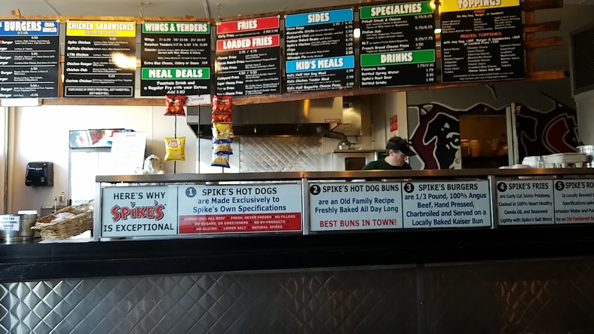On Any Dog, Burger or Sandwich: Spike's Mustard, Yellow Mustard, Ketchup, Mayonnaise, BBQ Sauce, Buffalo Sauce, Relish, Onions, Red Onions, Lettuce, Ranch Dressing, Spike's Grill Sauce, Blue Cheese Dressing, Teriyaki Sauce, Sweet 'n Sour, Russian Dressing